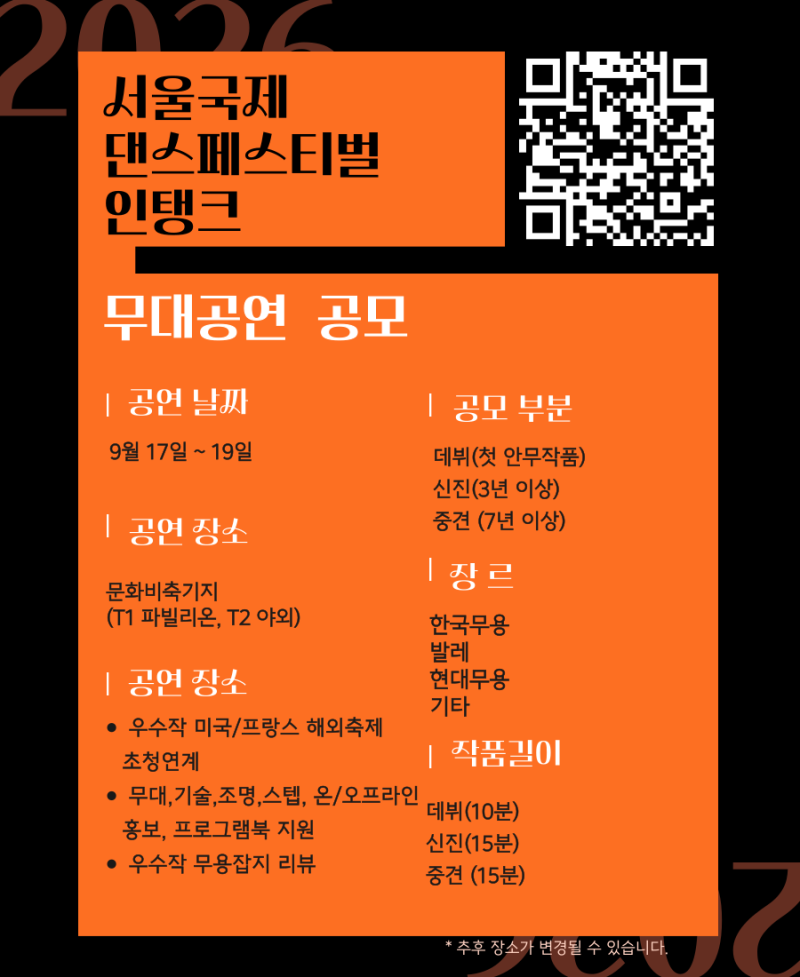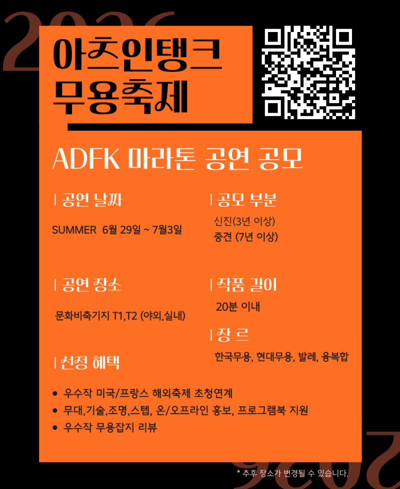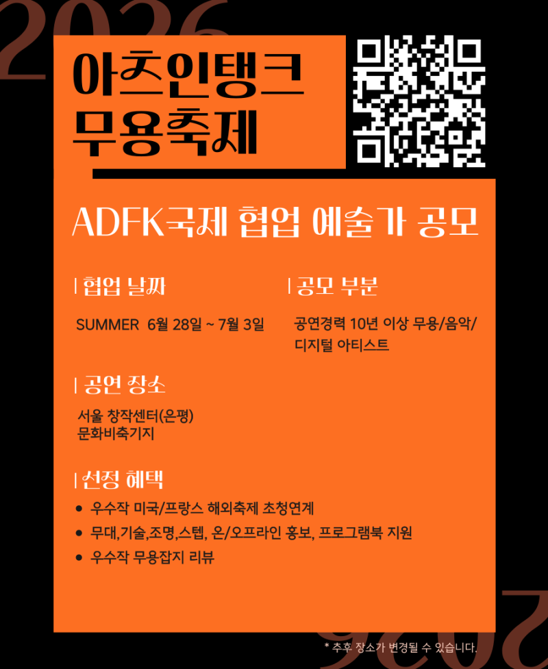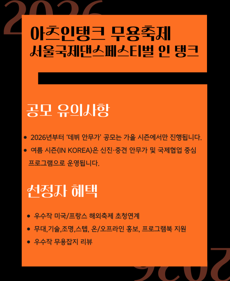 2026 제9회 아츠인탱크 무용축제 참가자 공모