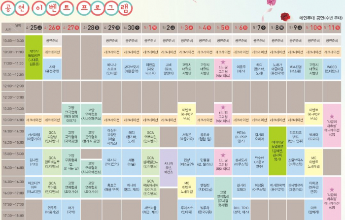 주요행사: 야외 화훼전시, 실내 화훼전시, 글로벌 화예작가 작품전, 공연 및 이벤트, 고양플라워마켓