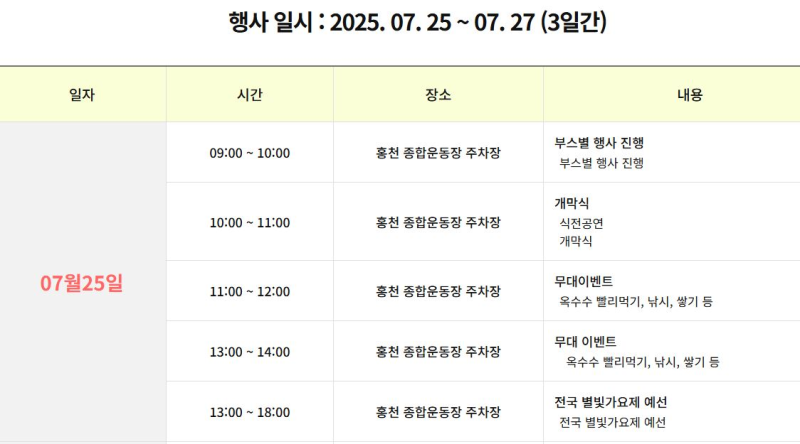 2025년 29회홍천 찰옥수수 축제
