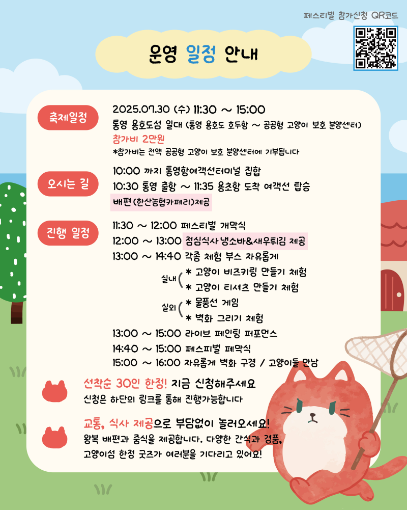 - 왕복 배편 제공 (통영 → 고양이섬)