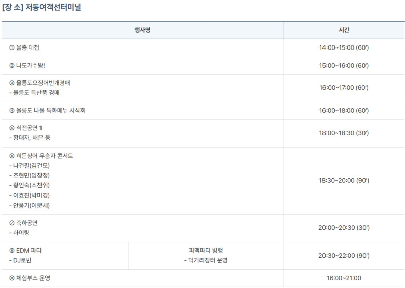 장 소 : 울릉군 일원(저동항, 천부항, 남양항)