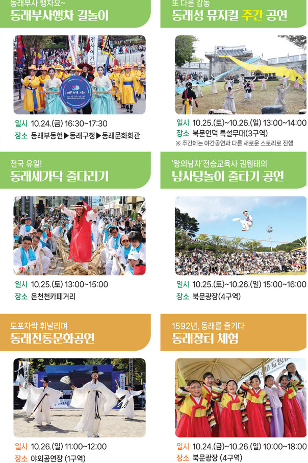 동래부사행차 길놀이, 동래세가닥줄다리기, 동래성전투재현 뮤지컬