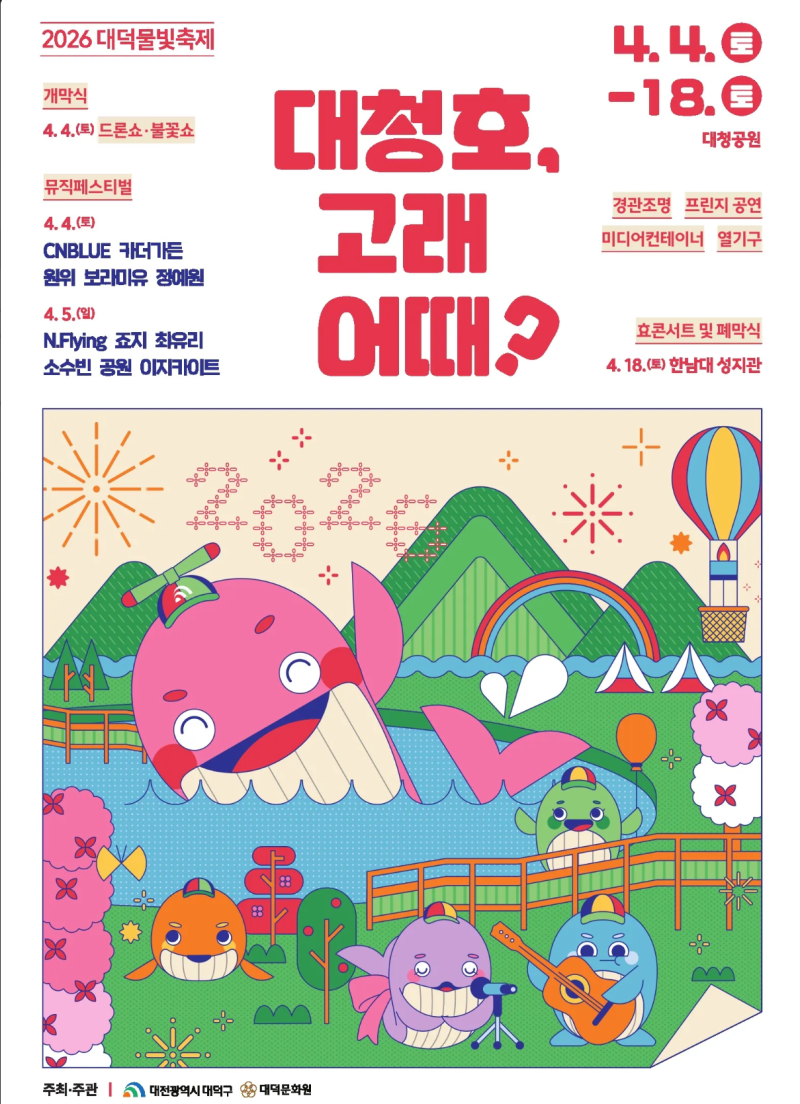 태그대청공원고래고래노래자랑대덕뮤직페스티벌대청호 벚꽃축제대덕구 고래축제대청호 고래 어때?