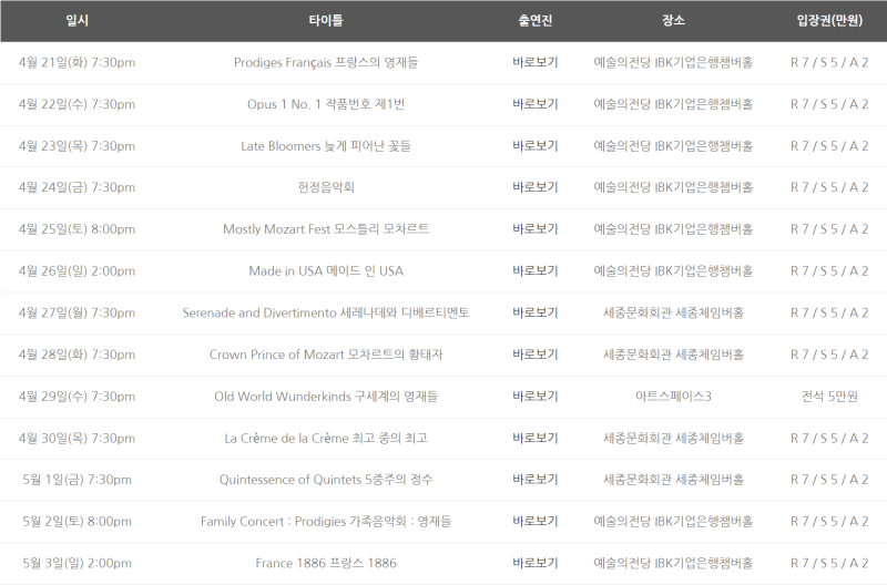 장소 예술의전당 IBK기업은행챔버홀, 세종문화회관 체임버홀, 아트스페이스3