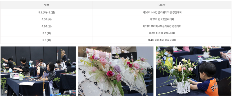 - 주요행사: 야외 화훼전시, 실내 화훼전시, 글로벌 화예작가 작품전, 공연·이벤트, 고양플라워마켓