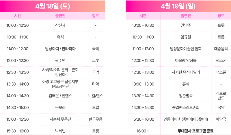기간2026-04-18(토) ~ 2026-04-19(일) / 2일간