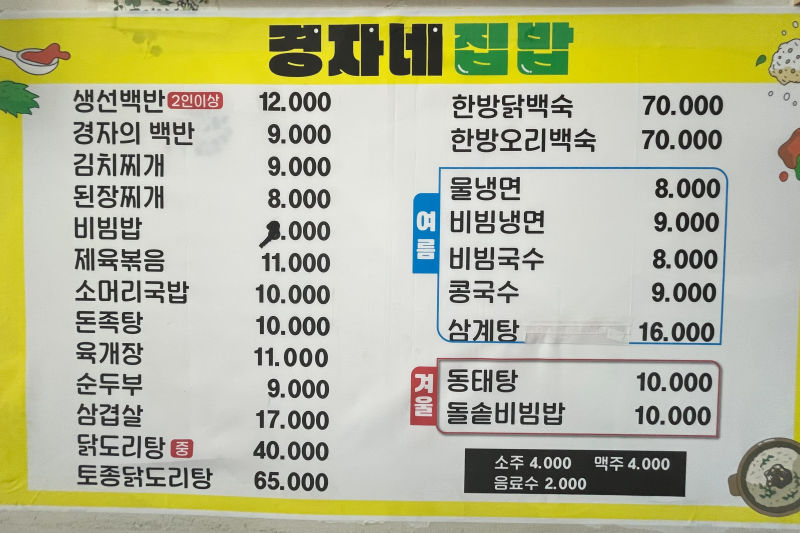 우리는 경자의 백반 (9000원) 시켰어요.. (2025년 8월 폭염 날씨에)