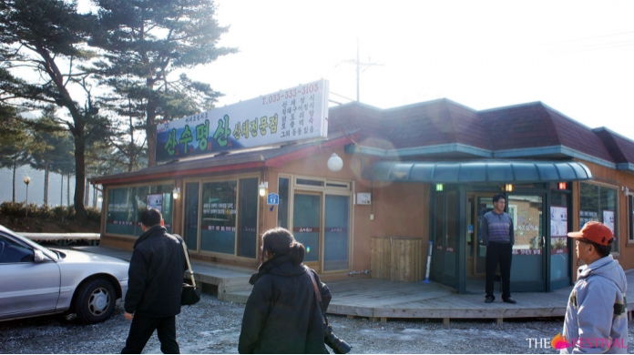 오대산 월정사 가는 길 산수명산 산채전문점이 보인다.