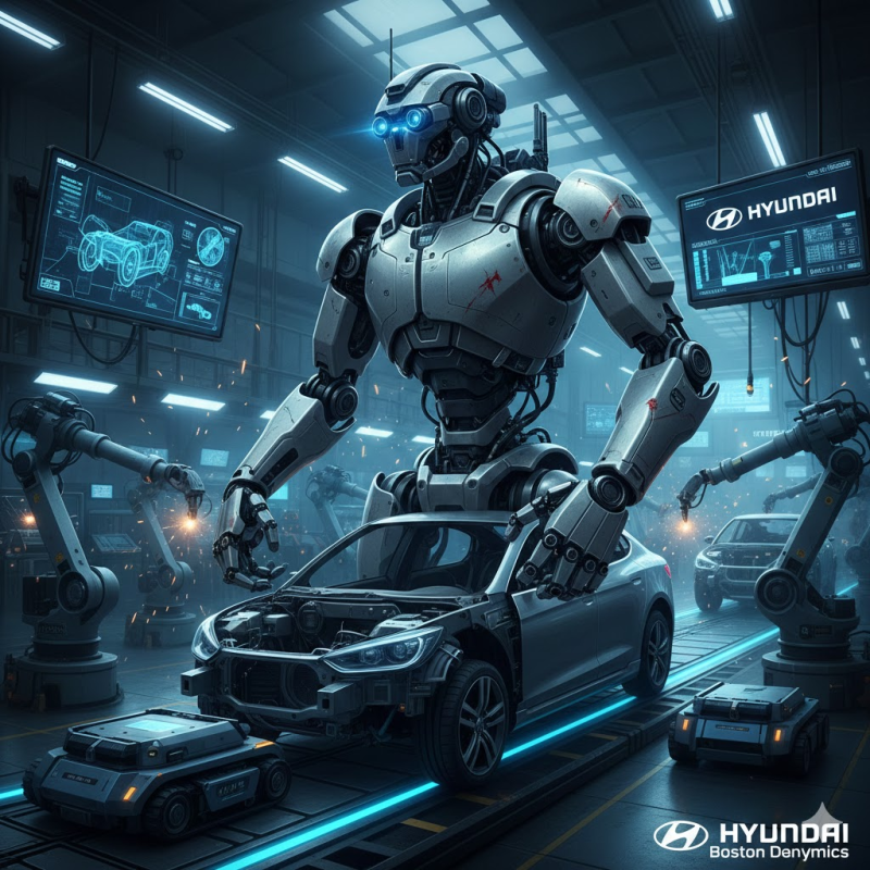 현대차 아틀라스는 360도 시야와 정교한 손을 가진 휴머노이드로, 공장에서 실질적인 부품 운반 업무를 수행한다.