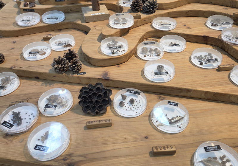 수목원에서 나온 씨앗들이 전시되어 있네요