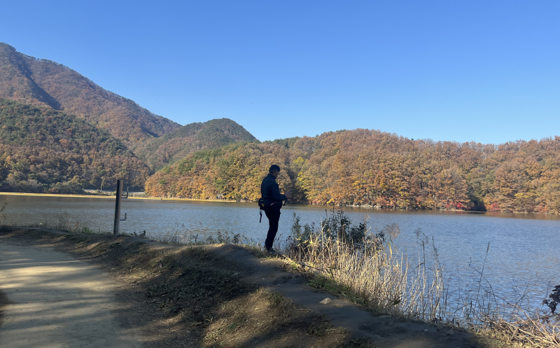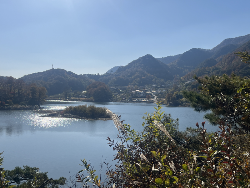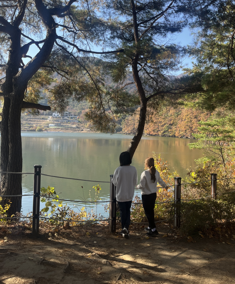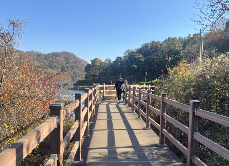 지금부터 양 켠의 호수를 보며 걷기에 좋은 힐링 코스인데
