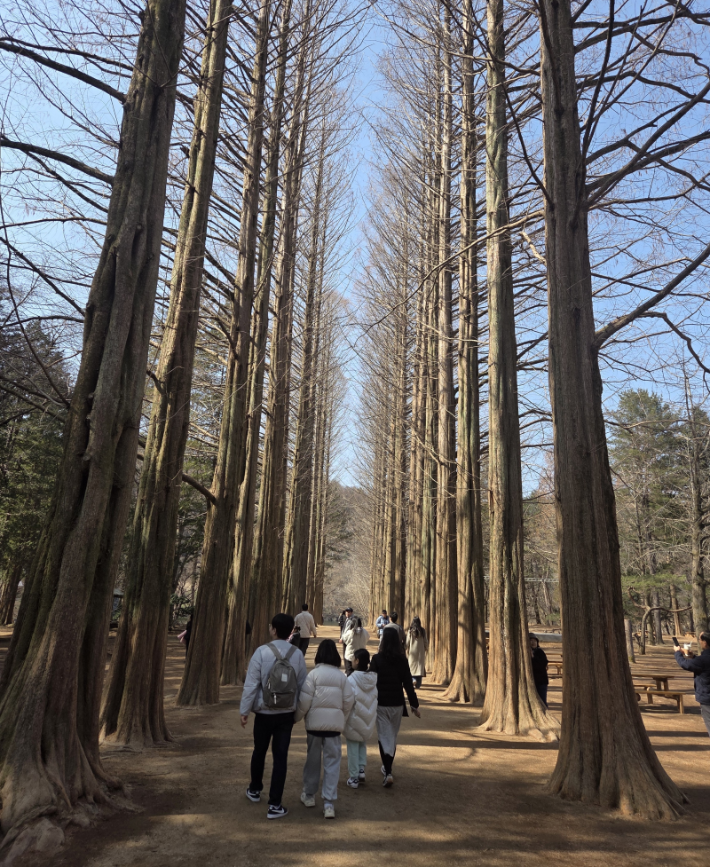 흥미롭게 조각상을 바라본 뒤에 메타세콰이어 길을 따라 강쪽으로 갑니다.