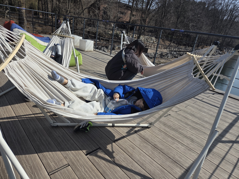 귀여운 아이들 보기 좋아요~ 통나무 위에서 노는 모습도, 해먹에 누워있는 모습도.. 남이섬이 넓어서 실컷 뛰놀면 좋겠어요. 타조와 공작새를 가장 좋아하지 않았을까^^