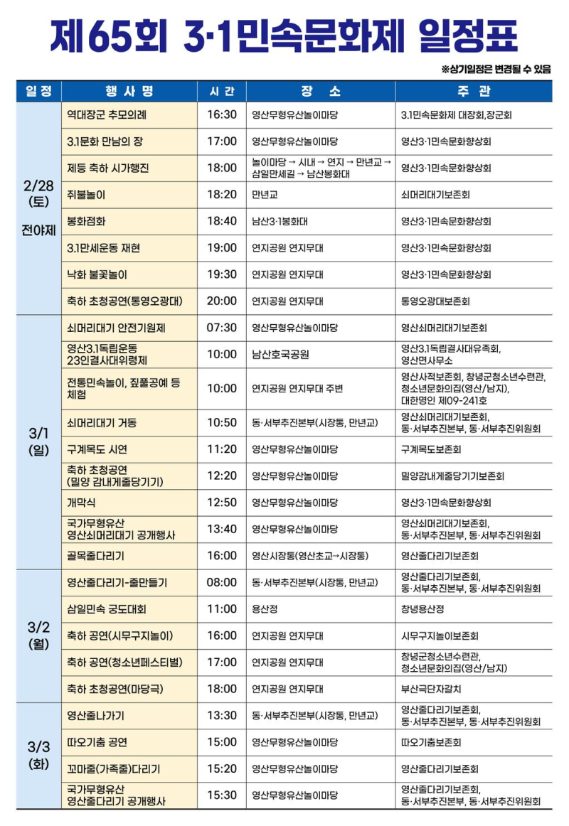 행사 문의 : (사)3·1민속문화향상회 055-536-0031, 창녕군 문화예술과 055-530-1461