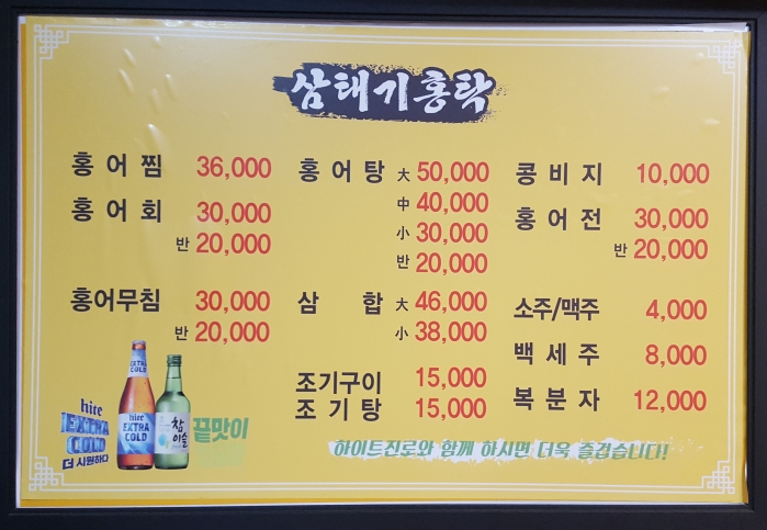 홍어찜 / 홍어회 / 홍어무침 / 홍어탕 / 홍어삼합 / 홍어전