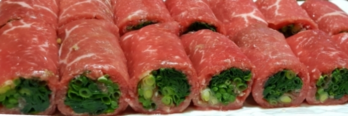 메인메뉴: 한우고기말이 소불고기 차돌관자