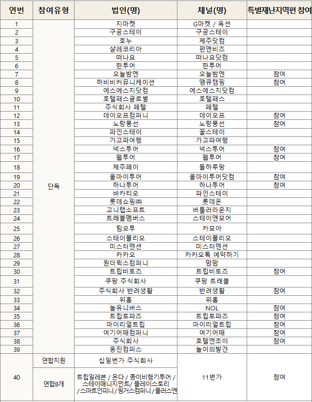 2025년 하반기 숙박세일페스타 참여 온라인 여행사(OTA) 목록